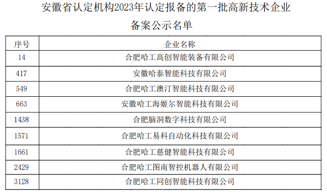 10月16日,国家科技10月16日,国家科技部火炬中心发布《安徽省认定机构2023年认定报备的第一批高新技术企业拟进行备案的公示》,合肥市智能机器人研究院13家企业榜上有名,其中9家为首次认定企业,4家为复审企业。截至目前,我院培育高新技术企业总数达30家。部火炬中心发布《安徽省认定机构2023年认定报备的第一批高新技术企业拟进行备案的公示》,合肥市智能机器人研究院13家企业榜上有名,其中9家为首次认定企业,4家为复审企业。截至目前,我院培育高新技术企业总数达30家。