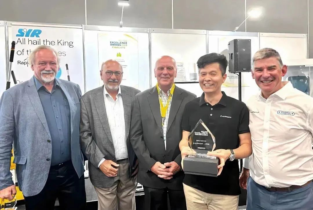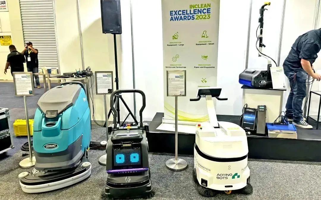 哈工澳汀商用无水清洁机器人与国际清洁巨头Tennant、新加坡机器人创新代表Lionsbot一同角逐2023年INCLEAN创新卓越奖,最终成功拿下INCLEAN创新卓越奖,成为large设备类唯一获奖者。此次获奖也代表国际清洁行业对澳汀无水清洁机器人理念和清洁效果的认可和肯定。