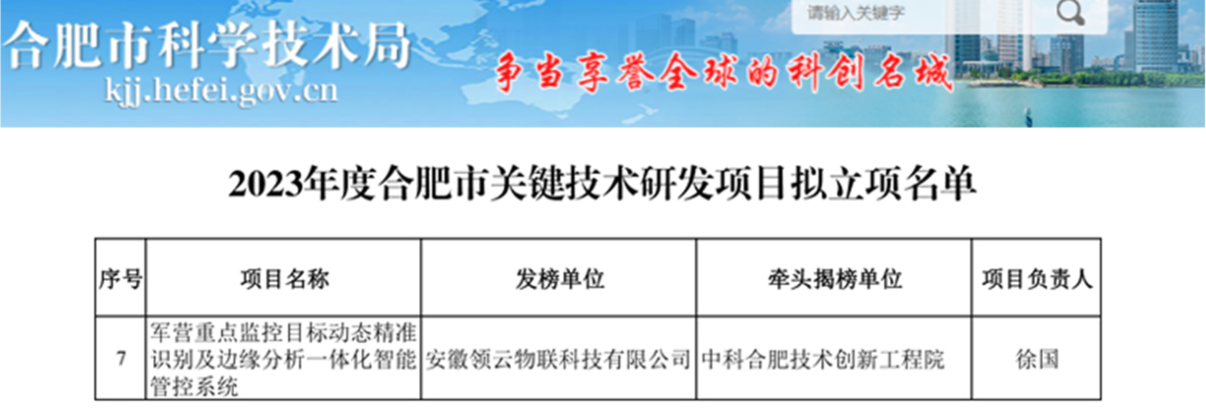 1月19日,合肥市科技局发布《关于2023年合肥市科技攻关“揭榜挂帅”项目拟立项名单的公示》,领云科技发榜的关键技术研发项目“军营重点监控目标动态精准识别及边缘分析一体化智能管控系统”,由中科合肥创新院、中科院合肥院联合揭榜。