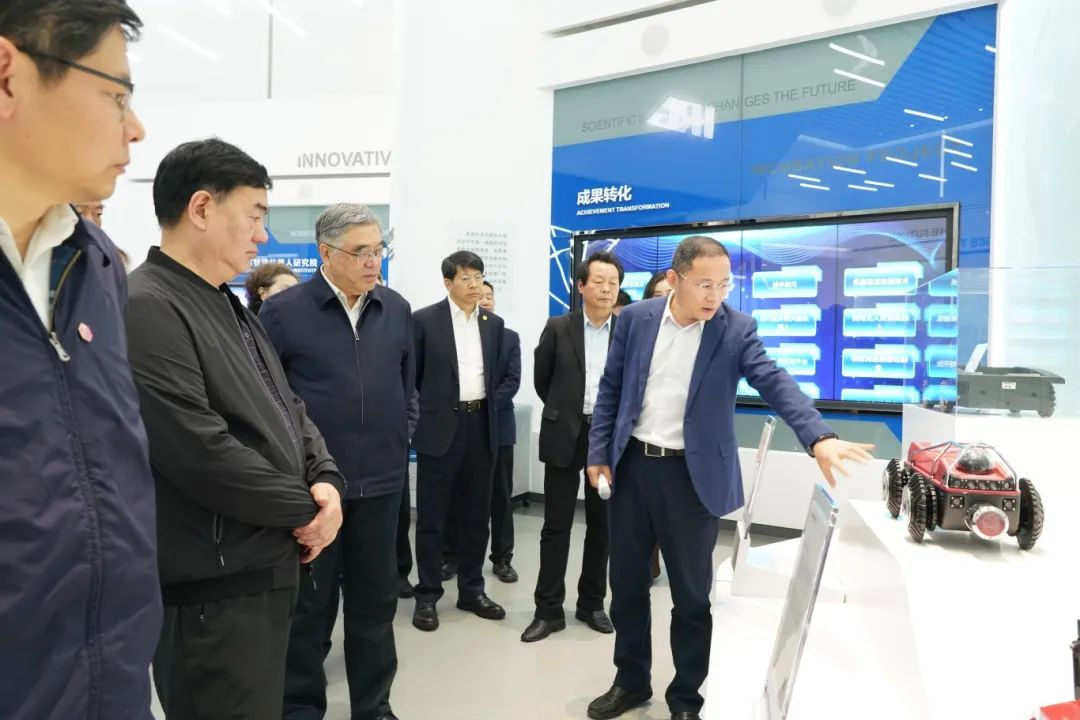 在智能数字化展厅,于振中详细介绍了研究院“研发-转化-培育”的创新生态,在机器人、高端装备、光电传感、医疗健康、现代农业等领域的关键技术突破、成果转化以及产业化进程情况,并就培育企业的各类智能机器人产品、行业应用、产业布局进行了展示交流。