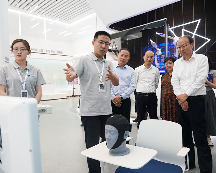 在数字化展厅,周长奎认真听取了研究院在智能机器人、高端装备、光电传感、医疗健康等领域的关键技术突破、科技成果转化及产业化情况介绍,并对研究院发展模式及成果表示肯定。