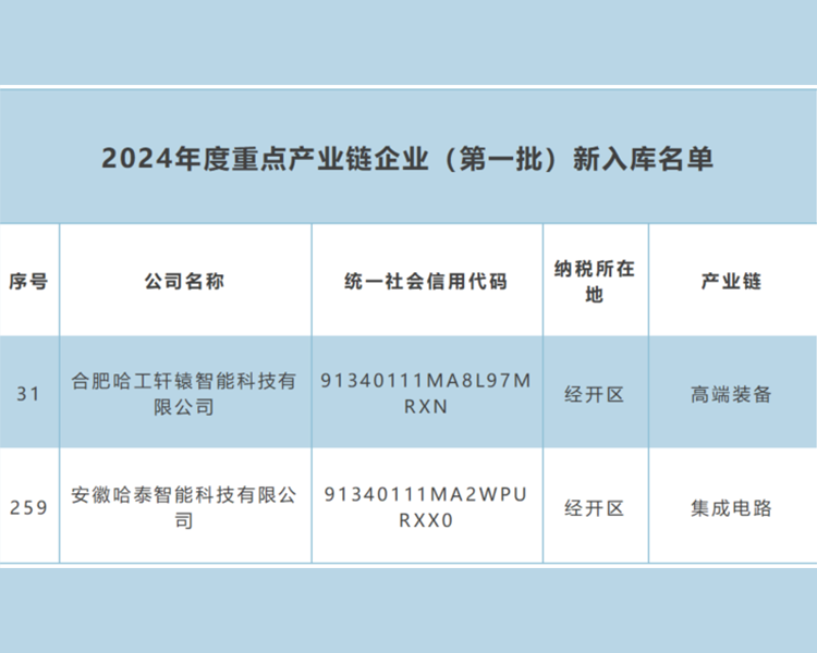 6月,合肥市推进战略性新兴产业发展工作委员会办公室发布《2024年度合肥市重点产业链企业(第一批)新入库企业名单》,我院两家培育企业哈工轩辕、哈泰智能上榜。