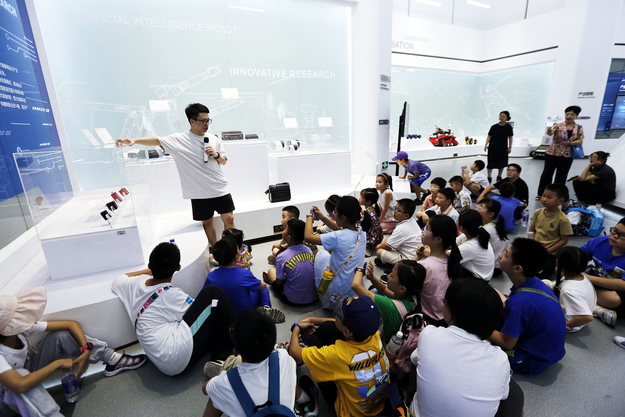 基地研学活动包括数字展厅参观、机器人互动、科普课堂三大环节,涵盖“3D打印”“三维建模”“消防机器人实景演练”“漫步外太空”“我是三‘心’小工匠”等八大各具特色的课程设计。可承接研学游、亲子游、成人科普、夏令营、冬令营等多类型科普研学活动,单日接待量可达1200人。
