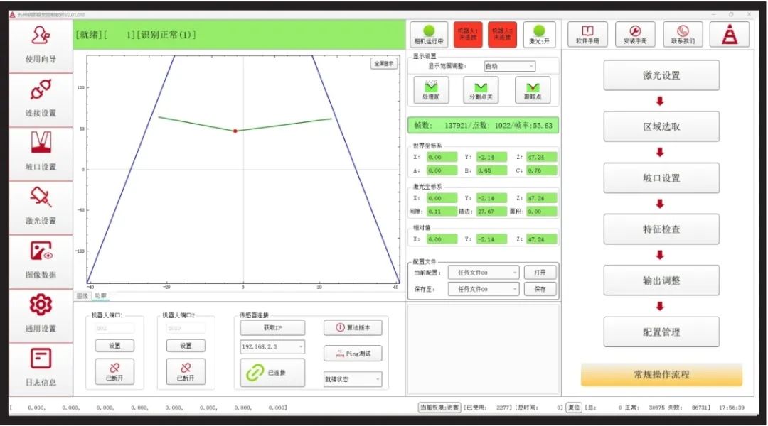通过SDK可获取坡口原始轮廓信息、点云数据、设置激光开关和亮度、获取坡口的特征点或截面信息。如坡口中心点、间隙、深度、错边等、设置轮廓识别滤波参数、切换坡口任务号、设置传感器曝光值。确保通过图像信息精准捕捉三维空间中的焊缝细节,适应工件偏差,大大降低了工装夹具的费用。