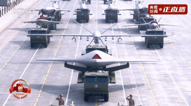 空中无人作战方队,受阅的新型察打一体无人机、无人僚机、舰载无人直升机,可隐蔽突击、广域覆盖、自主协同。
