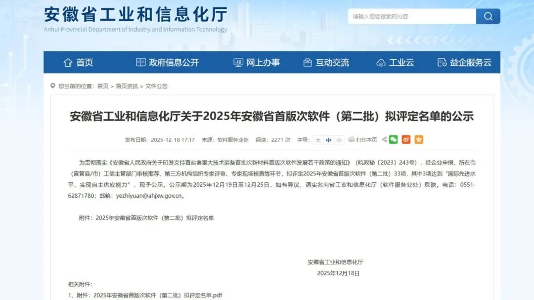 近日,安徽省工业和信息化厅公示2025年安徽省首版次软件(第二批)拟评定名单,我院培育企业合滨智能“智能超声数据盒子”、哈工标致“辅助步行训练及评估系统” 双双入选,均聚焦于智慧医疗关键场景。
