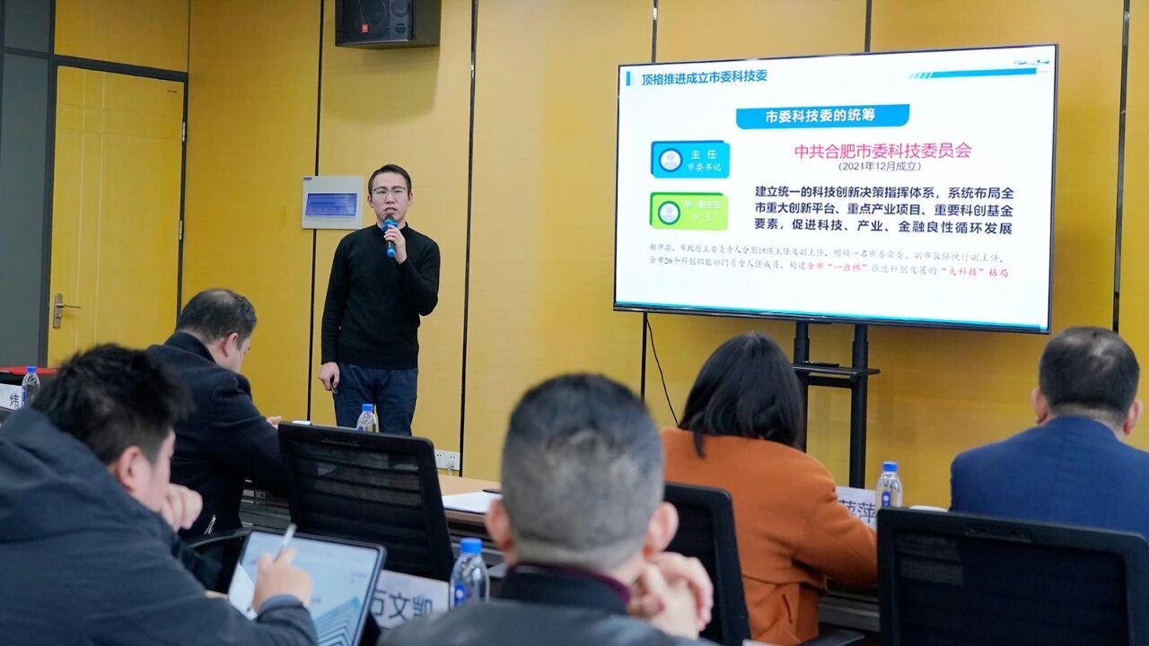 合肥市科技局成果处王少卿现场介绍合肥市科技成果转化支持体系,展现合肥在推动"科技-产业-金融"良性循环方面的制度创新。