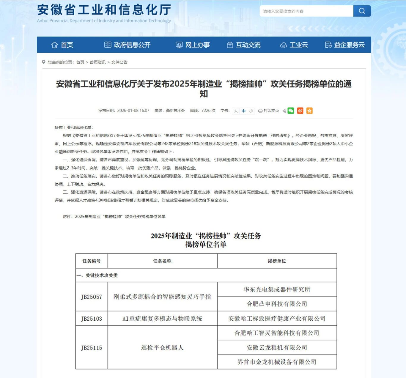 3家企业揭榜安徽省“揭榜挂帅”攻关任务