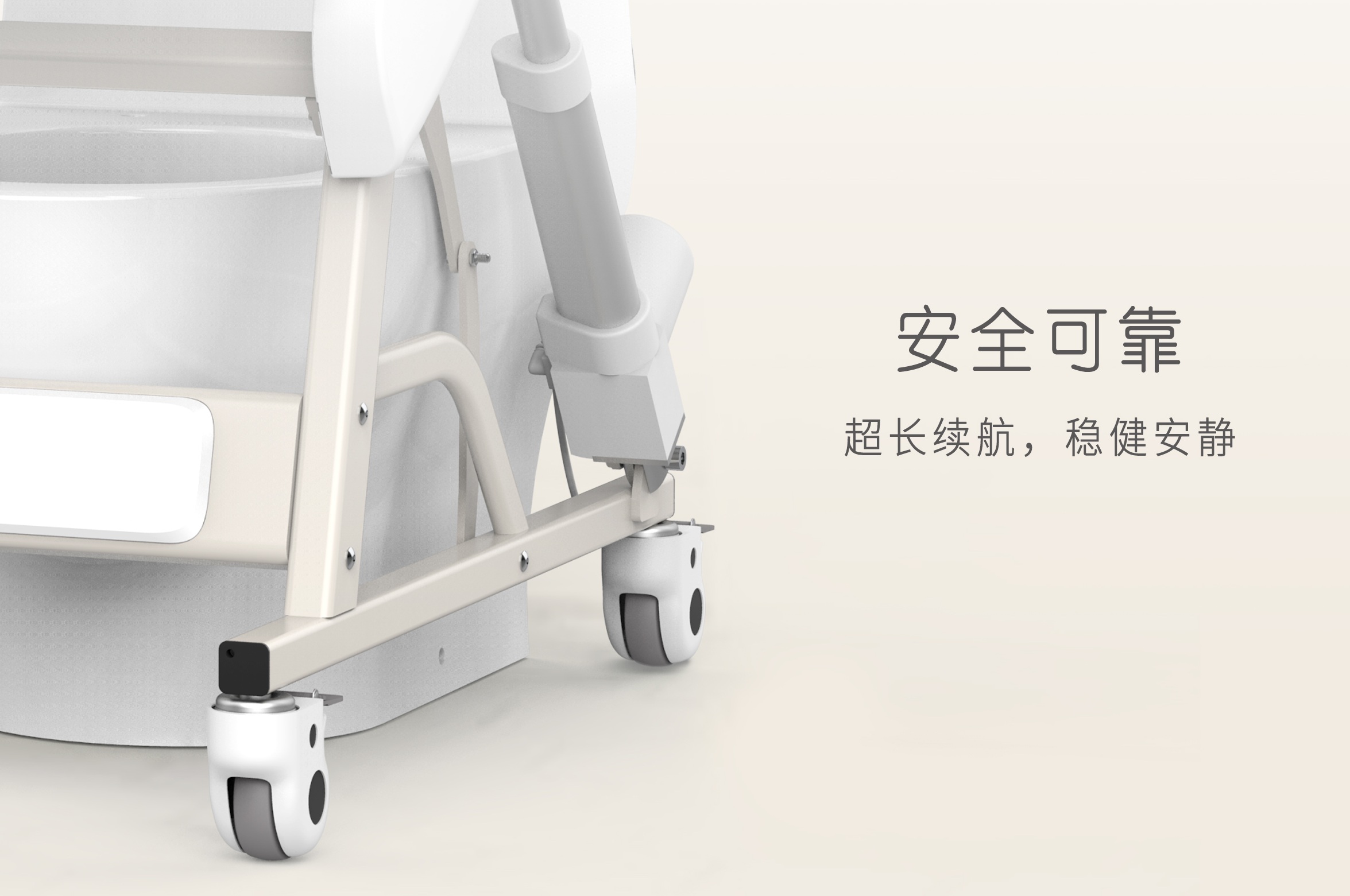 HRG起身助手可承受200斤以上负荷,安全牢固;特别采用的脚轮支撑设计,方便推行移动,同时在如厕使用过程中,可锁定脚轮,保证稳固抓地不偏移。