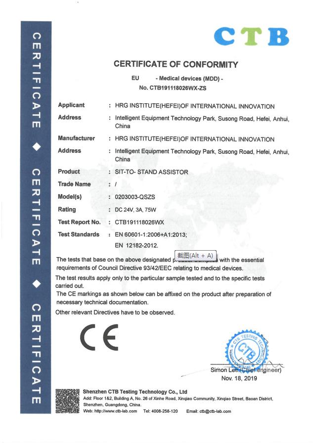 ——HRG起身助手CE认证