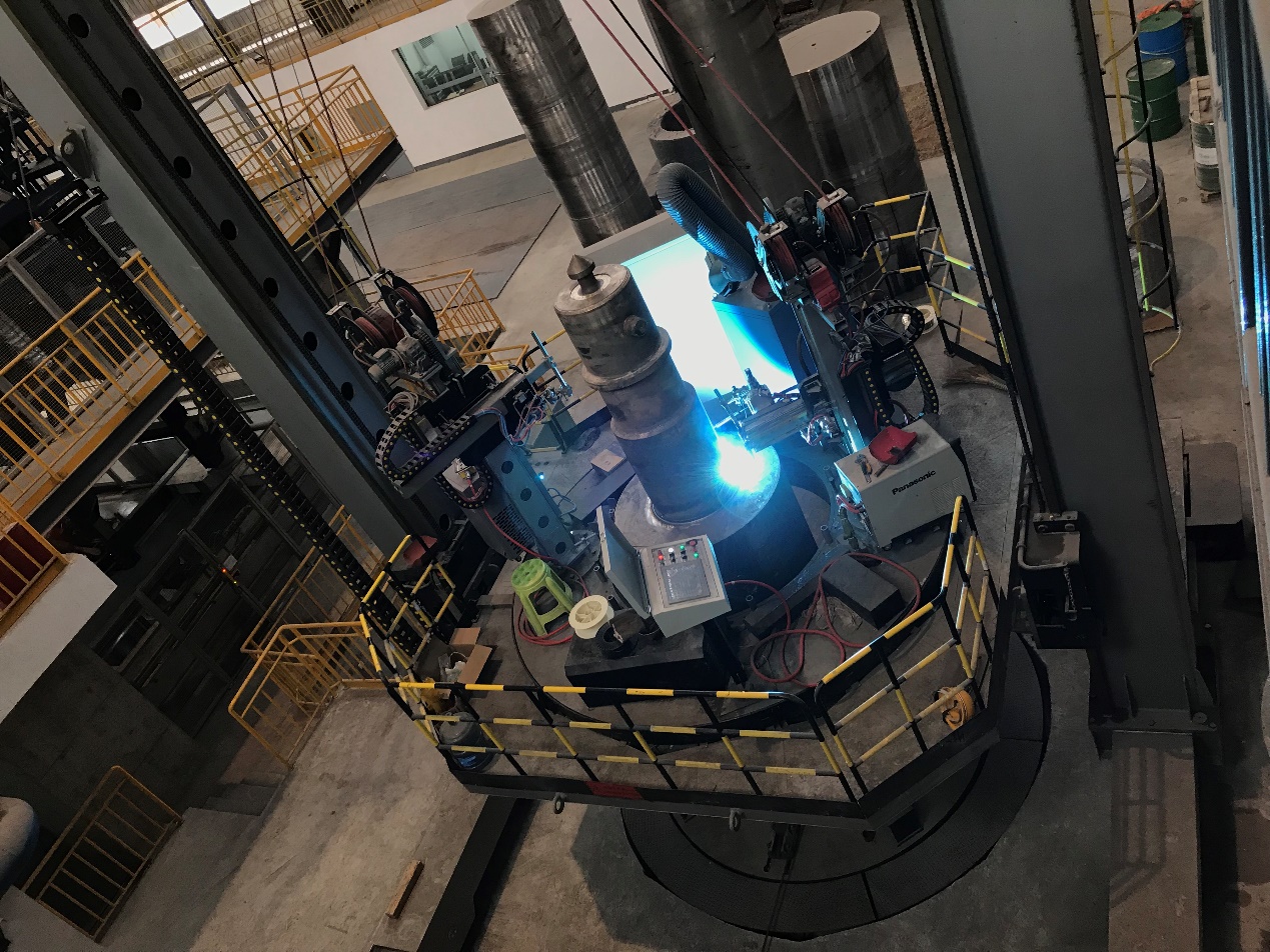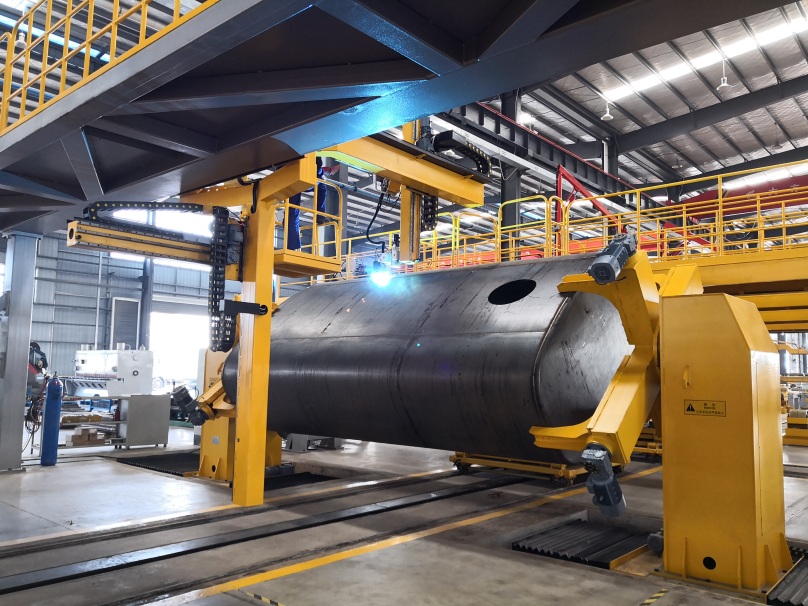 该设备具有存储不同类型工件的工艺参数功能,通过调用工件号自动匹配对应的工艺参数;采用立式焊接,焊接时采用工件不旋转而焊接操作机旋转的方式,实现自动环焊缝的多层多道焊接,提高了焊接质量和生产效率,减少辅助工装的投入,并具有缩短制作流程,节约场地等优点。