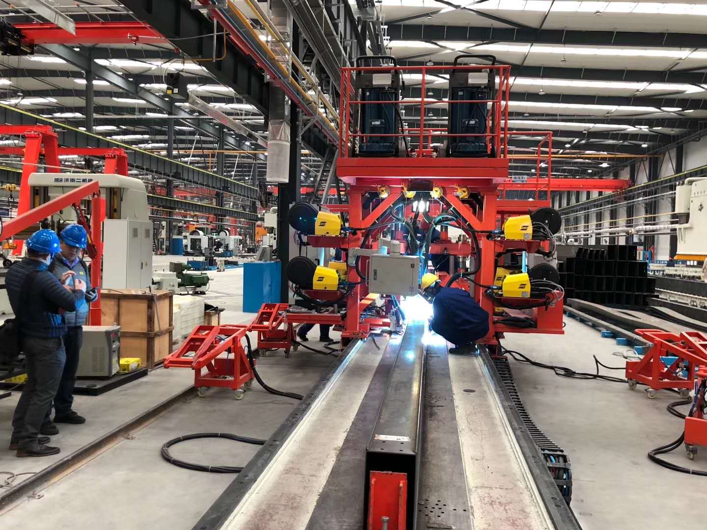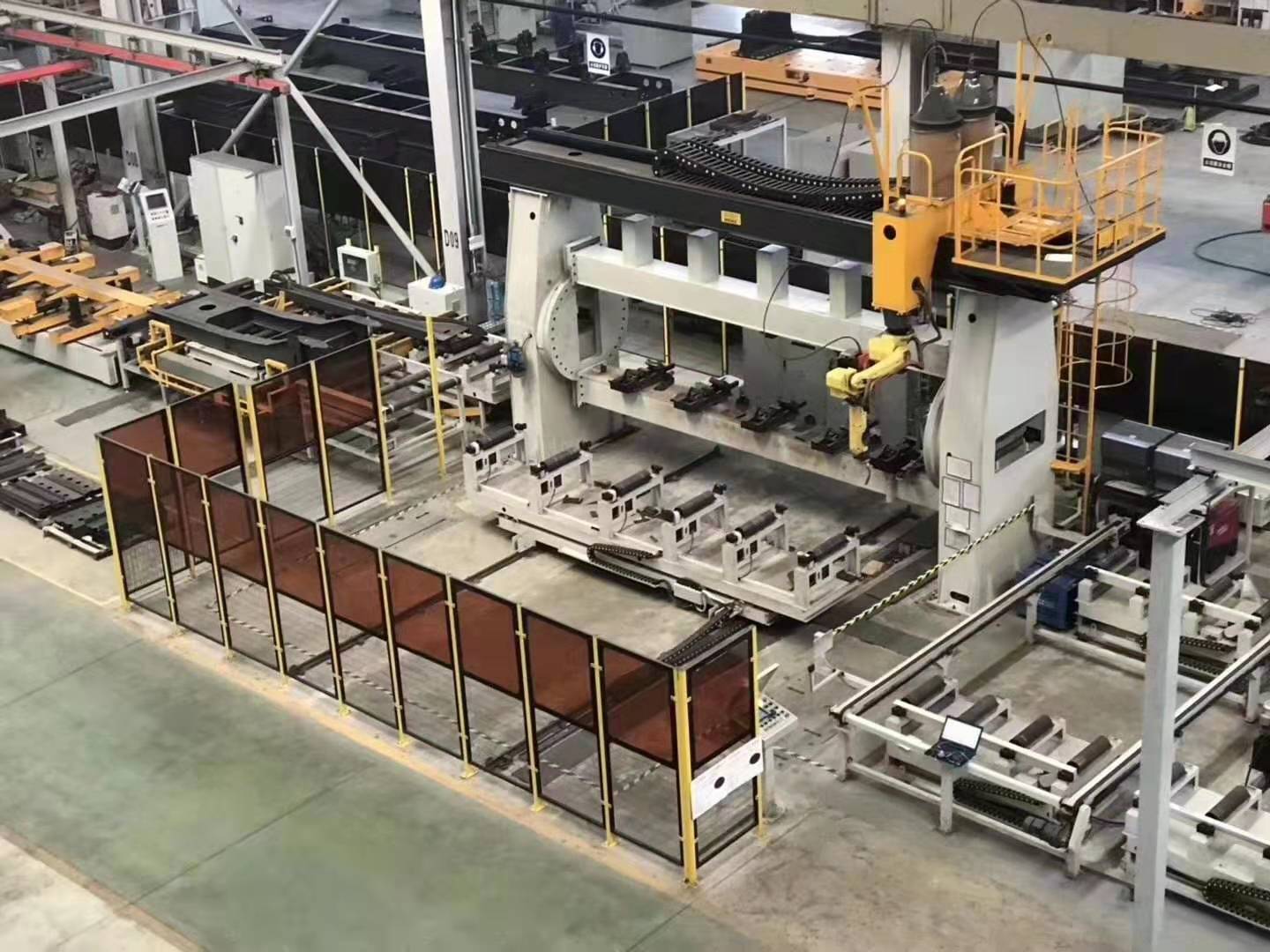 该生产线具有很高的生产柔性,智能化水平较高,能够满足10.5-28.5米天车大梁柔性生产。生产线集成机器人系统、视觉系统、自动检测系统、智能物流系统、信息化管理监控系统等,能与MES 系统完美对接。